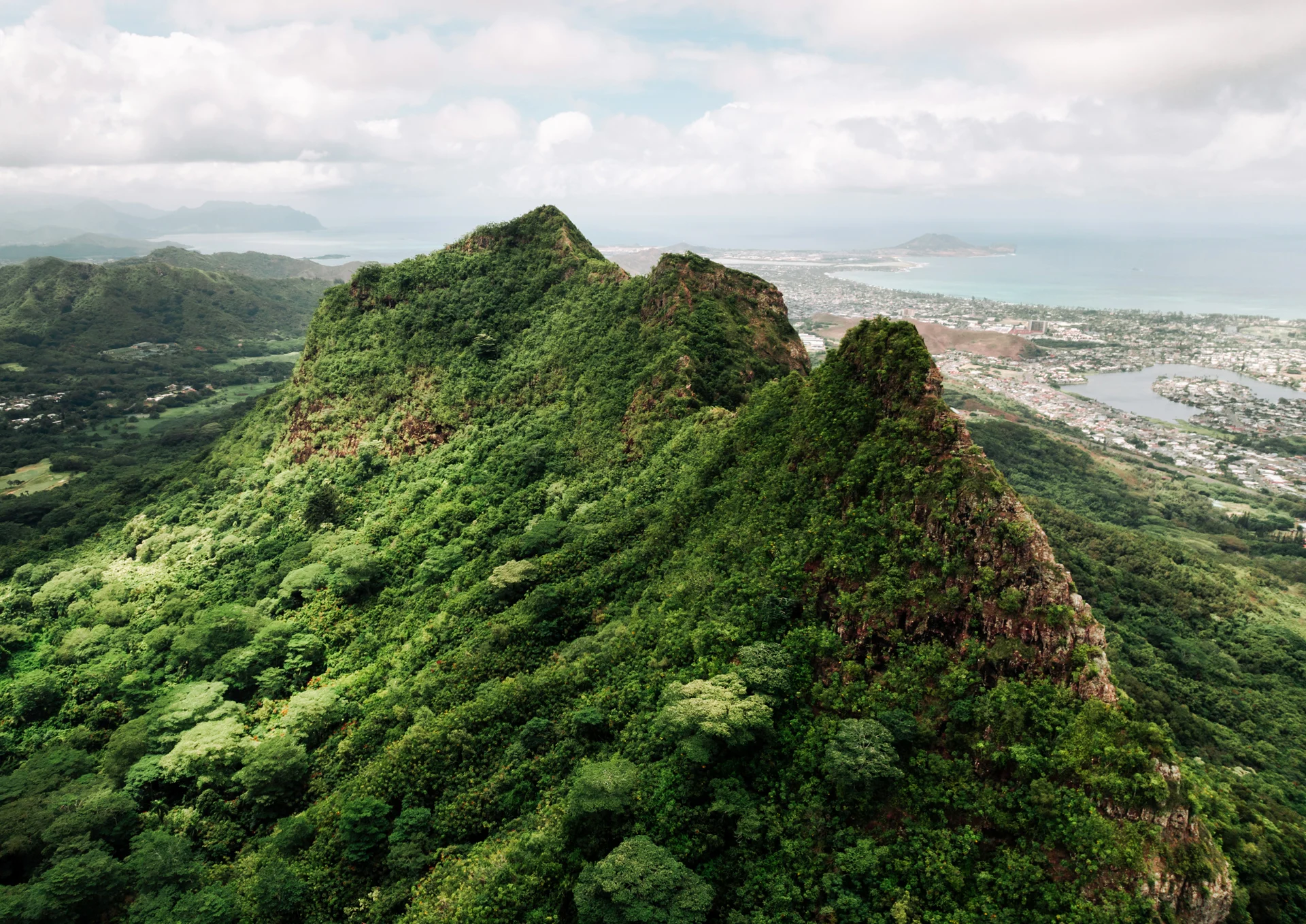 This photograph shows the three peaks of Olomana in Hawaii, sharp, rugged, and covered in deep green forest. During a brief four-day stay, I hiked through this range and discovered a completely different face of Hawaii. Most people picture the islands as beaches, white sand, and gentle waves, yet the mountains hold a beauty just as striking.