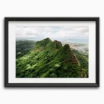 The ridges rise steeply from the landscape, shaped by wind, rain, and volcanic history. Standing here, surrounded by endless layers of green, it’s easy to feel how wild and vast the islands truly are. This image captures that unexpected side of Hawaii, not the coastline, but the mountains – majestic, raw, and unforgettable.